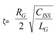 ζ=1 柵極電阻R計(jì)算如方程式4,例如門(mén)極回路寄生電感為25nH,門(mén)極等效電容為1nf,則臨界電阻值是10Ω. L寄生電感越大,臨界電阻值越大。