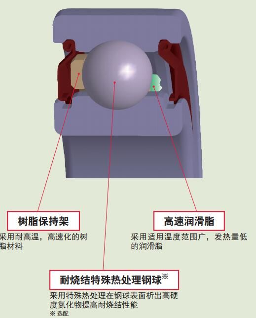 采用耐熱性優(yōu)良的樹脂材料,通過保持架強(qiáng)度解析對形狀進(jìn)行最優(yōu)化設(shè)計(jì),從而降低離心力,減少保持架與鋼球之間的摩擦,降低發(fā)熱量;